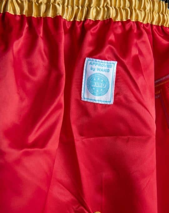Los pantalones cortos “WAKO” de TOP TEN te prometen el paquete completo de libertad de movimiento y funcionalidad . El material de alta calidad con un aspecto brillante y ligero está compuesto 100 % de fibras de poliéster de alto rendimiento y convence por su bajo peso y su máxima comodidad. Incluso con actividades sudorosas, no se pega a tu piel sino que cae casualmente sobre sus muslos. Con la cintura elástica de casi 9 cm de ancho y una posibilidad de ajuste adicional mediante cordones, los pantalones cortos “WAKO” hacen incluso los movimientos más difíciles de forma segura sin tirones. En los colores de competición rojo y azul , los pantalones cortos son visualmente llamativos y están decorados con el gran bordado TOP TEN y la etiqueta WAKO con acentos deportivos.
